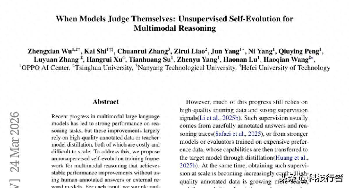 这项由清华大学和OPPO AI中心联合开展的前沿研究发表于2026年3月,论文标题为"When Models Judge Themselves: Unsupervised Self-Evolution for Multimodal Reasoning",研究编号为arXiv:2603.21289v2。对AI技术发展感兴趣的读者可以通过该编号查询完整论文内容。